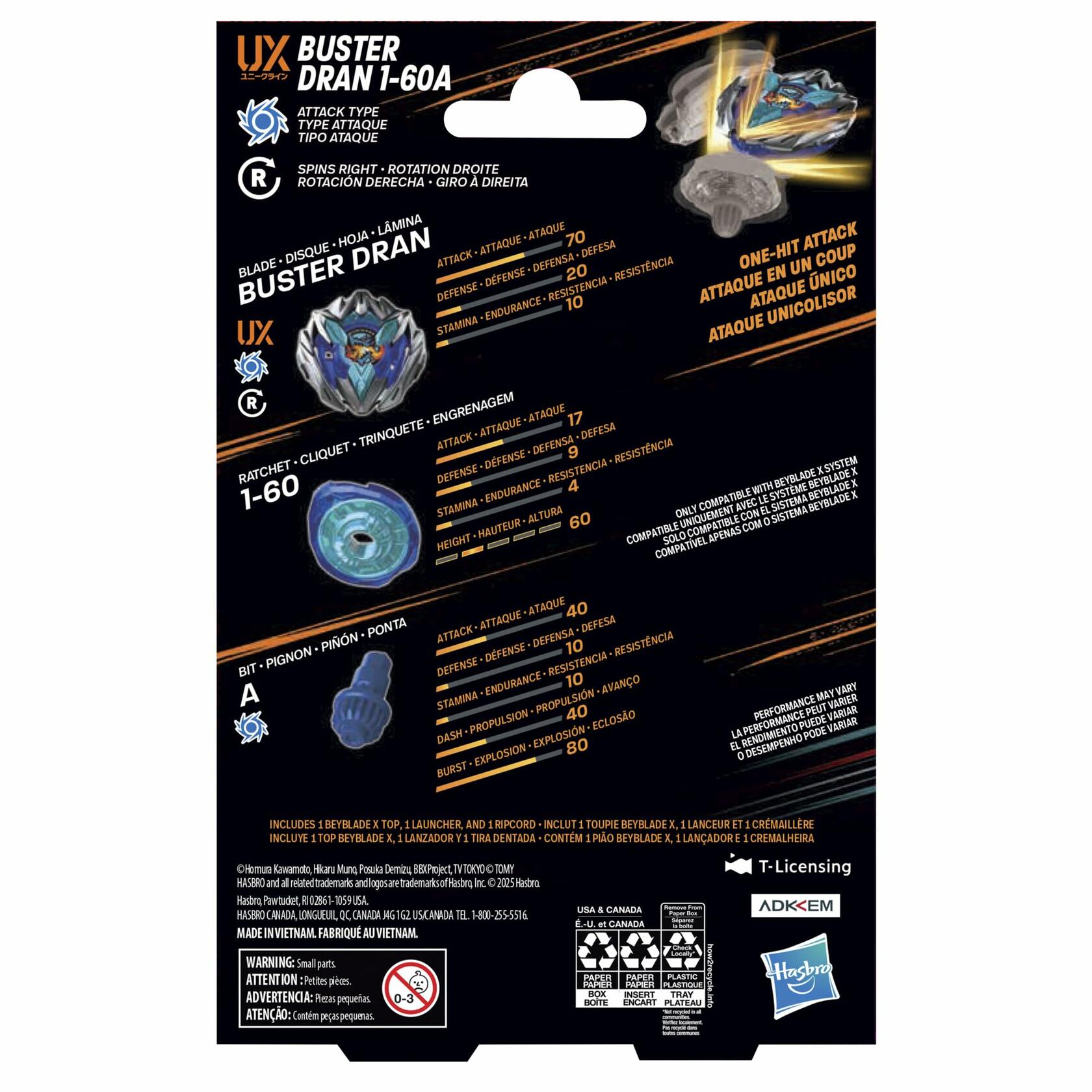 Beyblade X Buster Dran 1-60A UX Starter Pack Set with Attack Type Top and Launcher; Authentic Takara Tomy Battle Tops Games/Toys for Boys and Girls 8+