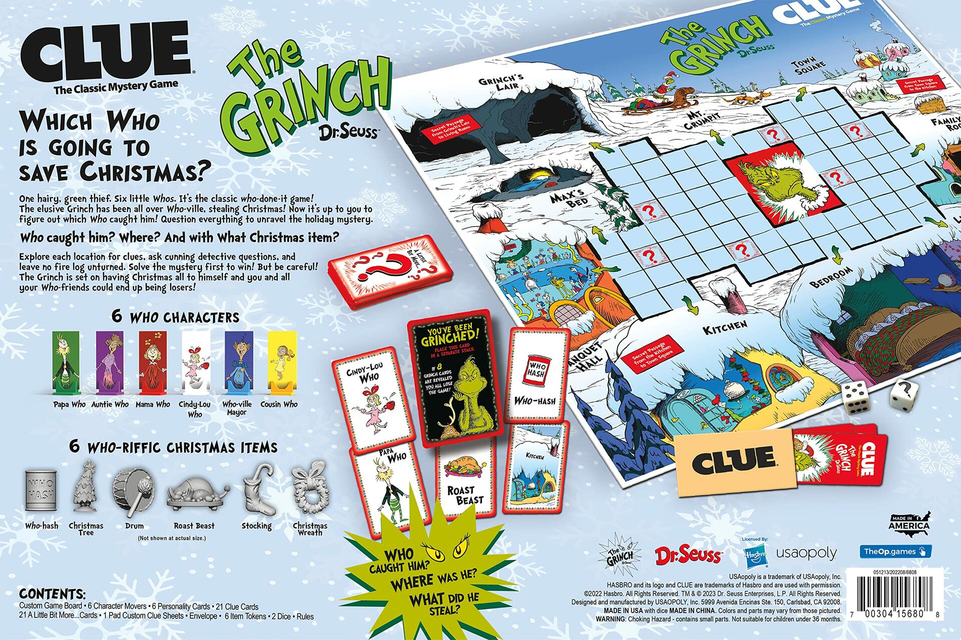 CLUE: The Grinch, Classic Mystery Board Game, Solve The Holiday Theft in Whoville with Cindy-Lou & More, Discover Who, Where, and What was Taken, Officially Licensed Dr. Seuss Merchandise