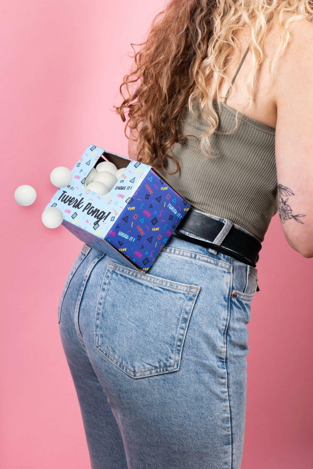 Fizz Creations Twerk Pong Novelty Game. The Original Twerk Family Party Game. Includes 10 Balls, Ribbon & Cardboard Boxes. Twerk to Shake The Ping Pong Balls Out!