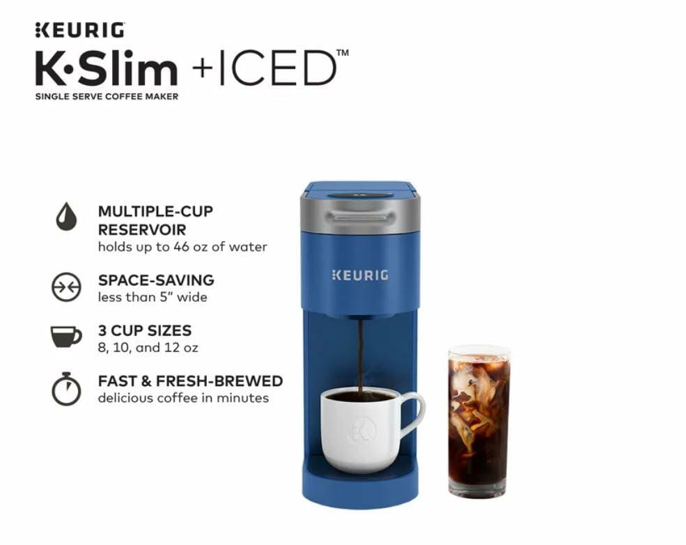 Keurig K-Slim + ICED Single Serve Coffee Maker, Brews 8 to 12oz. Cups, Blue