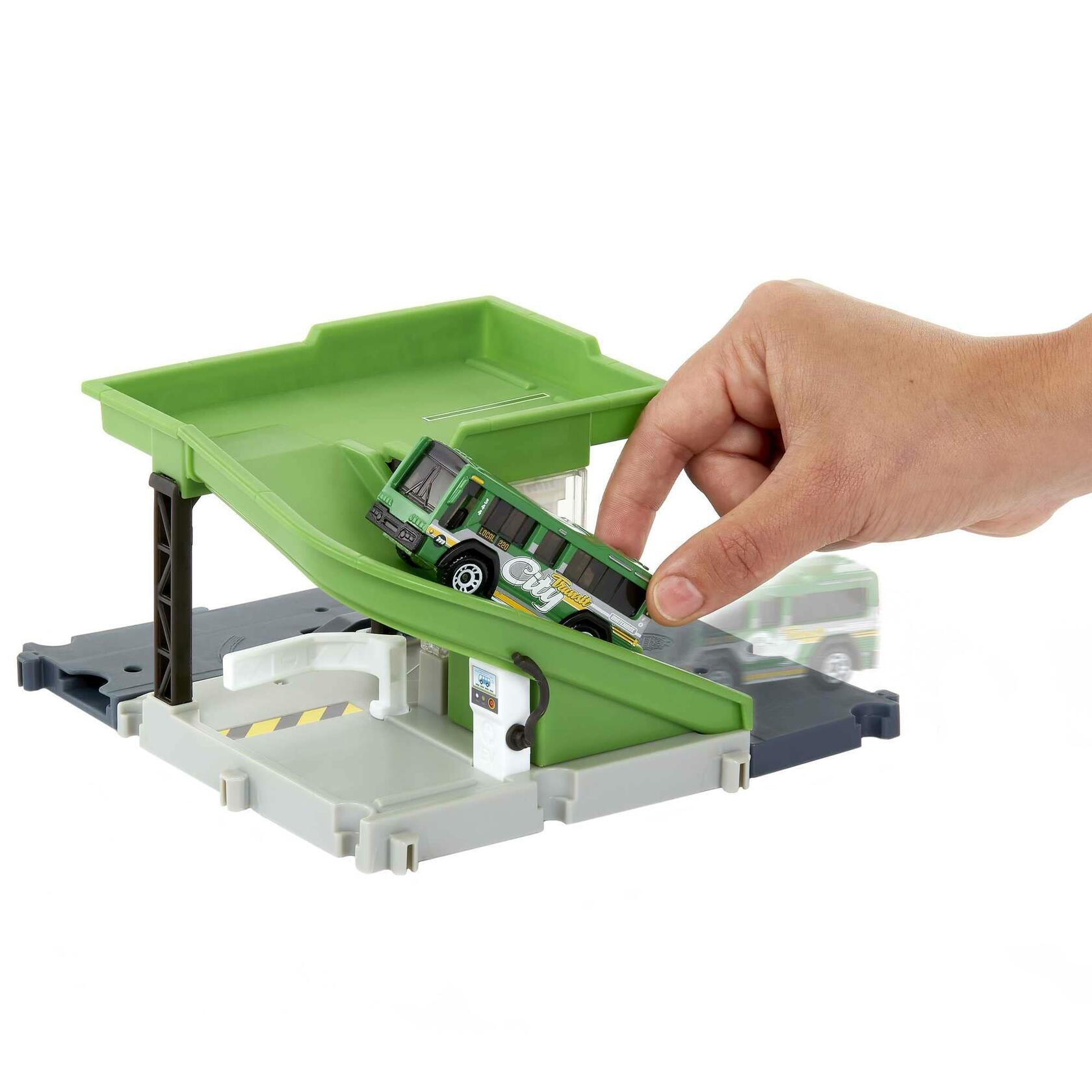 No one will want to miss the bus at Matchbox's Matchbox Action Drivers Bus Station. This playset will get kids to unleash their imaginations with cool details and fun features. When the bus enters the station, it activates the figure to walk towards it, ready to get on board. Includes a 1:64 scale Matchbox bus and a special "loading" station for "refueling" time. This set is compatible with other Matchbox and Hot Wheels sets to create endless adventure possibilities. Each set is sold separately and subject to availability. Colors and decor may vary.