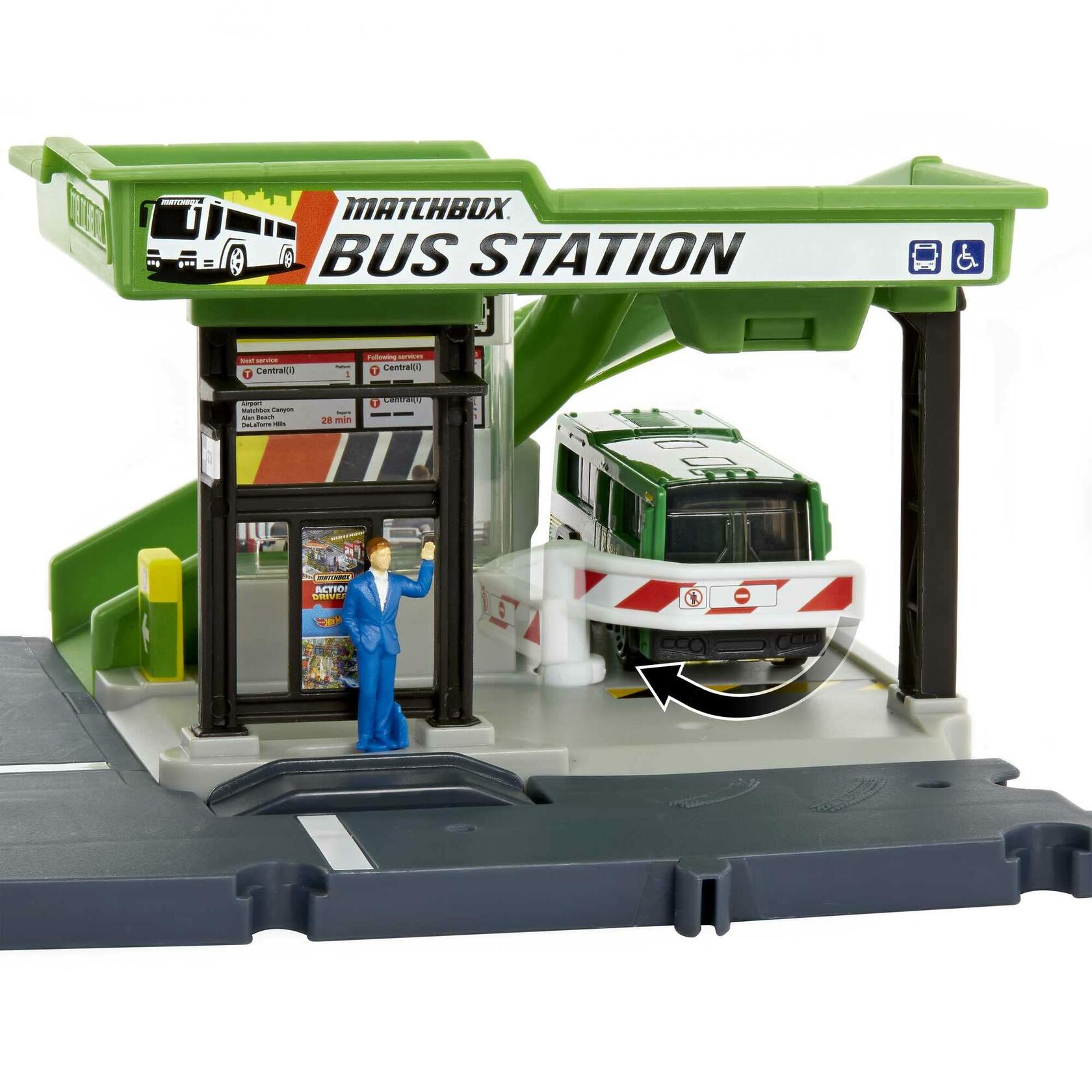- Endless things happen at Matchbox Matchbox Action Drivers Bus Station that kids won't want to miss.