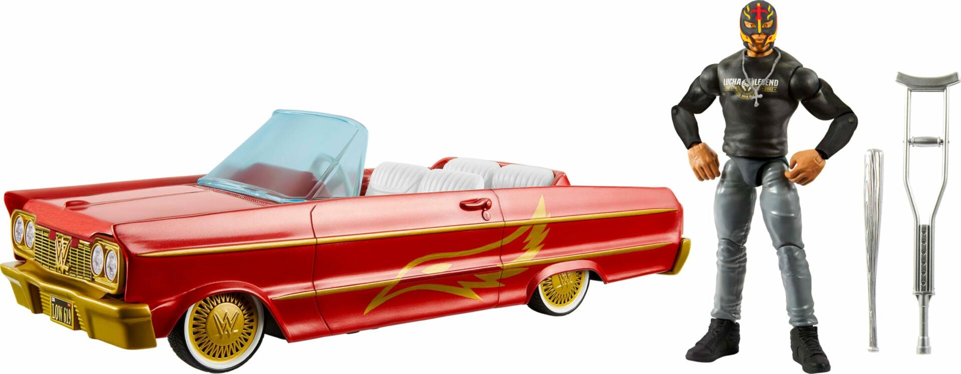 Mattel WWE Action Figure & Toy Vehicle Set, Rey Mysterio Main Event Figure & Lucha Low Rider Car with Launching Action & Hydraulics