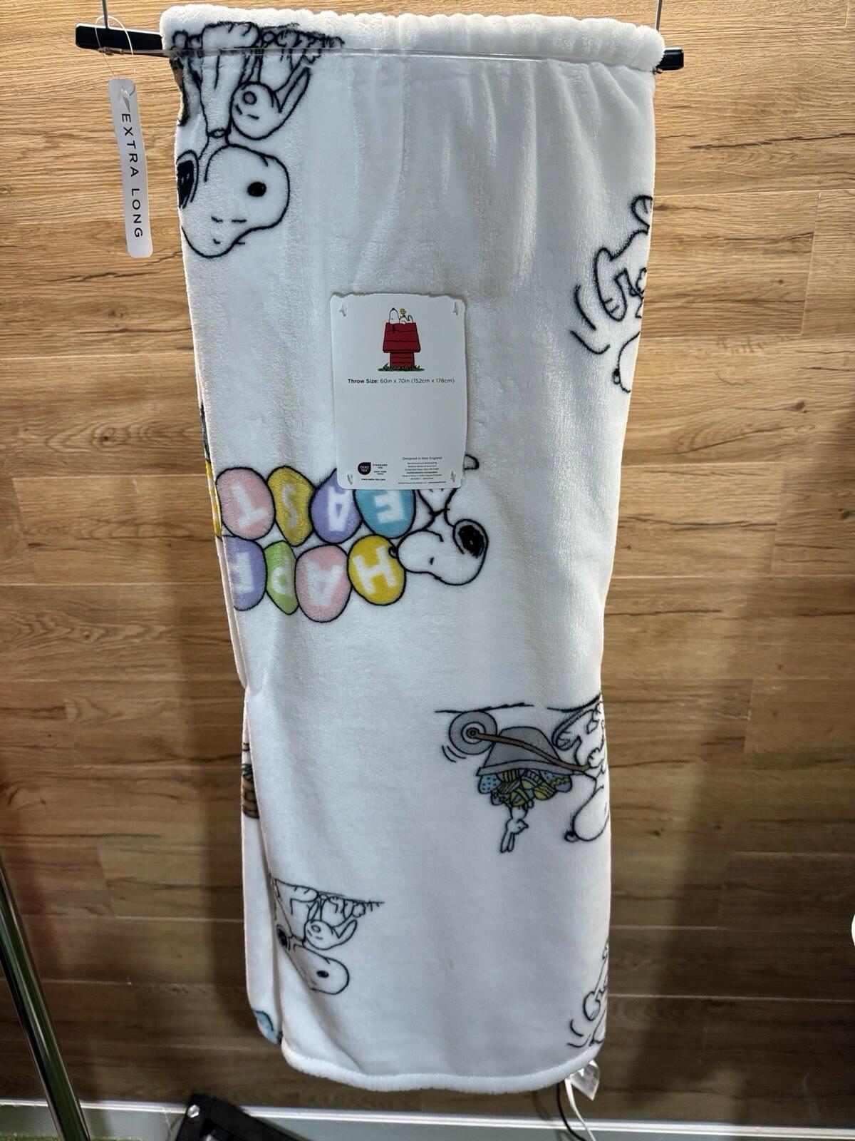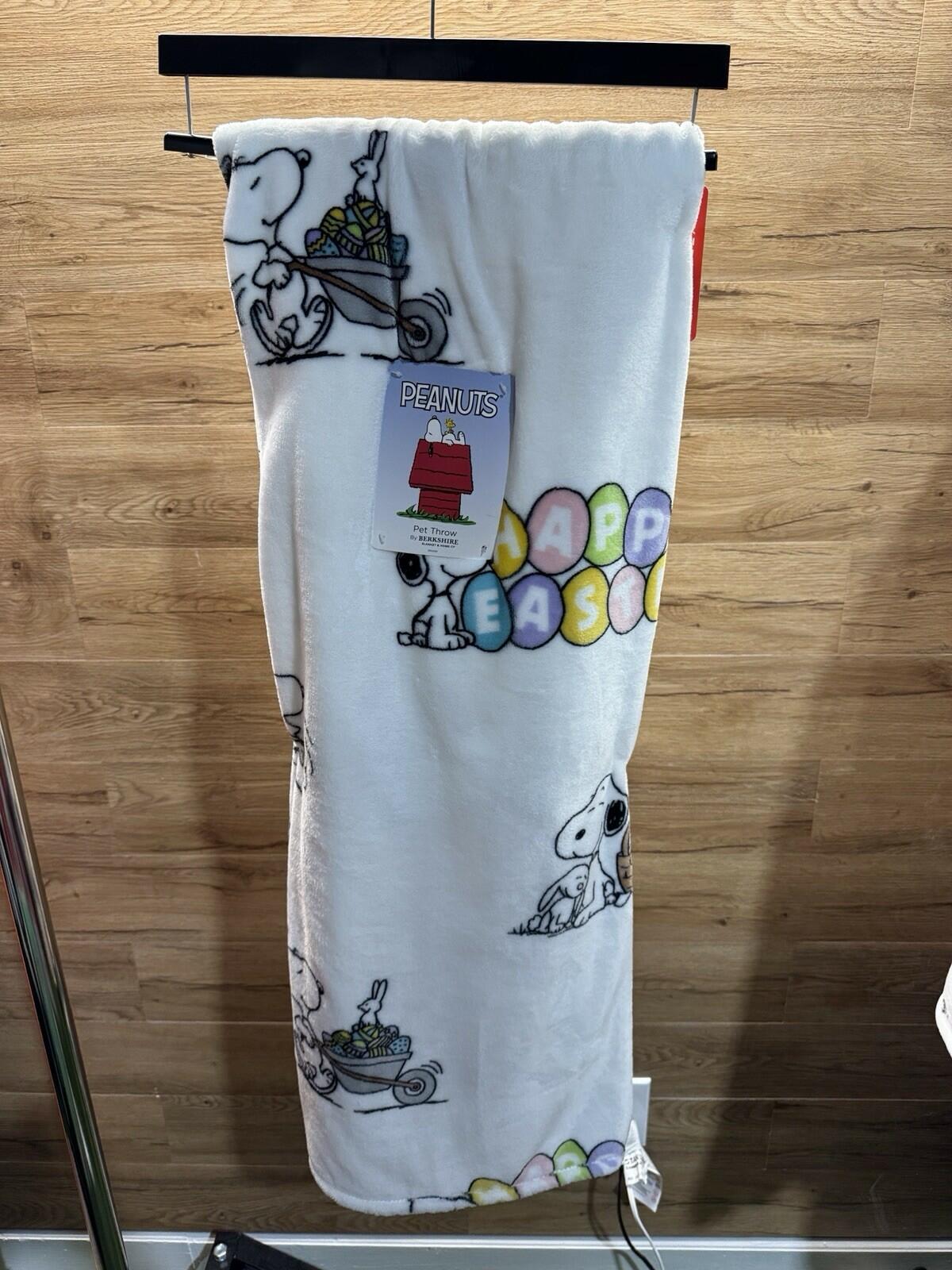 Peanuts Snoopy Happy Easter Throw Blanket Soft Plush 60”x 70” White .