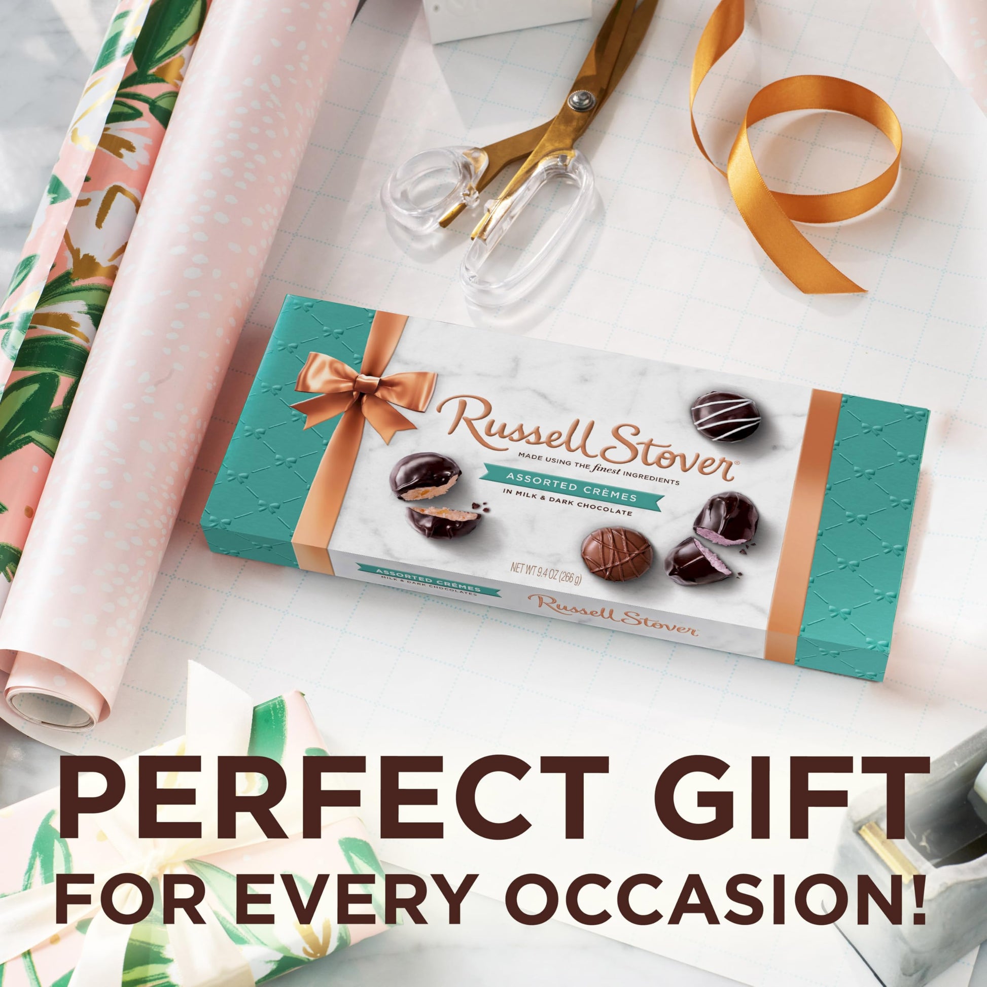 - Ready to Gift: Tastefully boxed and ready to wrap, a box of Russell Stover chocolates makes the perfect gift for any occasion. Just open to reveal our signature selection of delicious chocolates